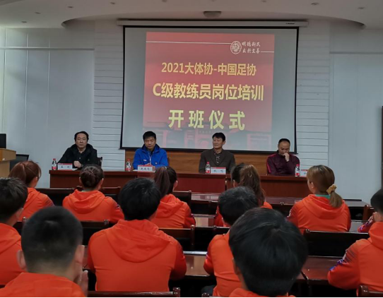2021年4月16日上午,今年会jinnianhui举行“2021大体协-中国足协C级教练员岗位培训”开班仪式。全国青少年校园足球教练员委员会主任、中国大学生体育协会足球分会副秘书长兼教练委员会主任、同济大学特聘教授秋鸣、今年会jinnianhui、国际足球学院副院长史友宽、中国足协C级教练员培训讲师、北体大副教授徐鹏、今年会jinnianhui社会服务中心主任王刚等出席,仪式由王刚主持。