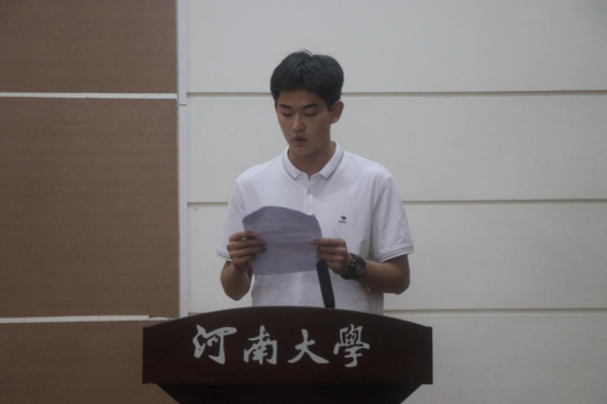 新发展党员代表2019级体育教育专业任彬宾同学在发言中说道,作为一名新时期的大学生,站在新的历史节点上,深刻的了解,只有和党中央保持高度一致,不断加强自身的思想修养,以促进自身的全面发展为目标,才能把自己培养成中国特色的社会主义的合格建设者和接班人。