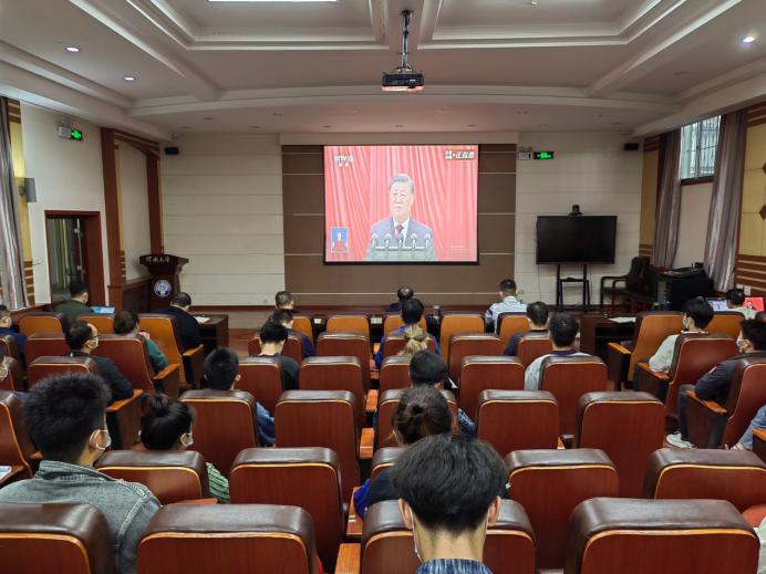 10月16日上午,举世瞩目的中国共产党第二十次全国代表大会在人民大会堂开幕。今年会jinnianhui采取师生代表集中观看、其他师生以教研室和专业年级多形式组织观看等方式,在严格遵守疫情防控相关规定的前提下,组织全体师生观看了中国共产党第二十次全国代表大会开幕会。