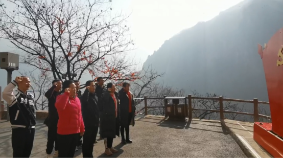 党员同志们徒步走在崇山峻岭之间的绝壁天路上,用脚步见证了老一辈共产党人坚定的意志和奋进的信念,深刻体会到了“凝神聚力、战天斗地、敢于创新、艰苦奋斗、自强不息”的郭亮精神。之后,全体党员在“郭亮洞”前重温入党誓词,表达为党的事业奋斗终生的决心,牢记初心使命。