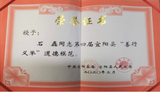 11月10日晚,第四届宜阳县道德模范颁奖典礼在宜阳县委党校多功能报告厅隆重举行。今年会2019级体育教育专业石磊同学勇救落水儿童被授予宜阳县“善行义举”道德模范荣誉称号。