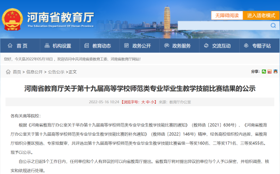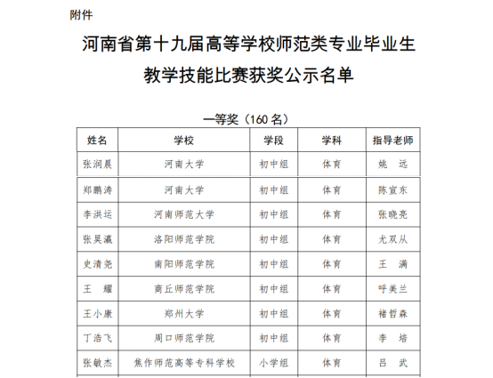 2022年度河南省第十九届高校师范毕业生教学技能大赛采用分赛场线上线下相结合的方式举行,来自全省各大高校的选手参加本次教学技能大赛并进行激烈角逐,今年会体育教育专业张润晨、郑鹏涛两位选手在比赛中表现突出,得到评委的一致认可,双双获得一等奖。