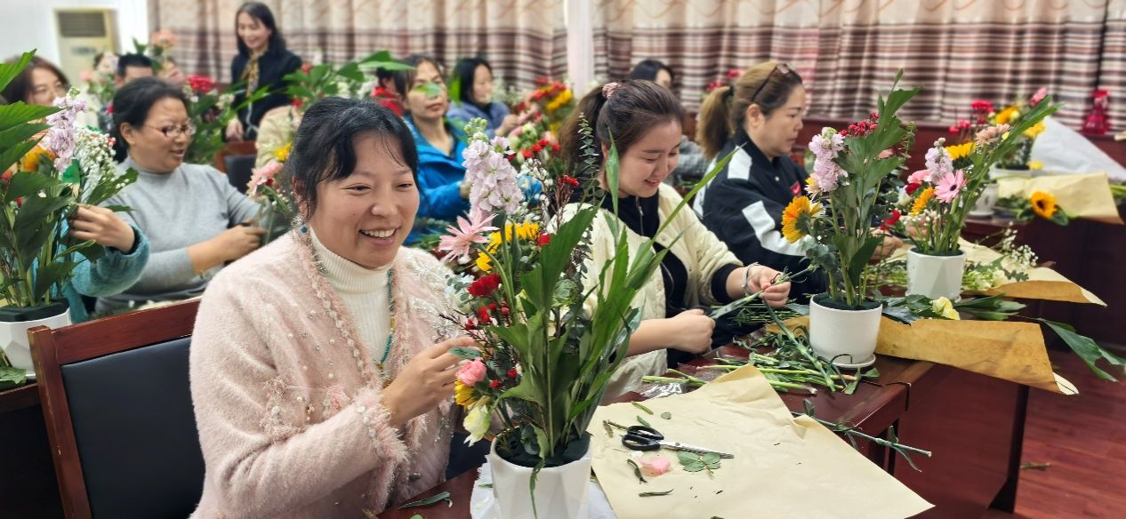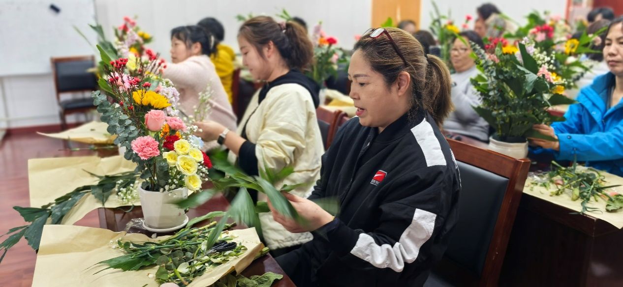 3月13日下午学院工会组织了“花语花趣,漫享春光”女教职工艺术插花活动。学院近30名教职工在花艺师的指导下现场沉浸式体验了插花艺术的魅力。花艺师为老师们讲解了不同鲜花的花叶造型、颜色搭配和花材养护等知识。老师们认真聆听、用心感受、亲手制作,享受着自己创造的美丽。此次插花活动让老师们在繁忙的工作之余放下压力、愉悦身心,在感受美、欣赏美和创造美的过程中,提升了艺术素养与生活品质。