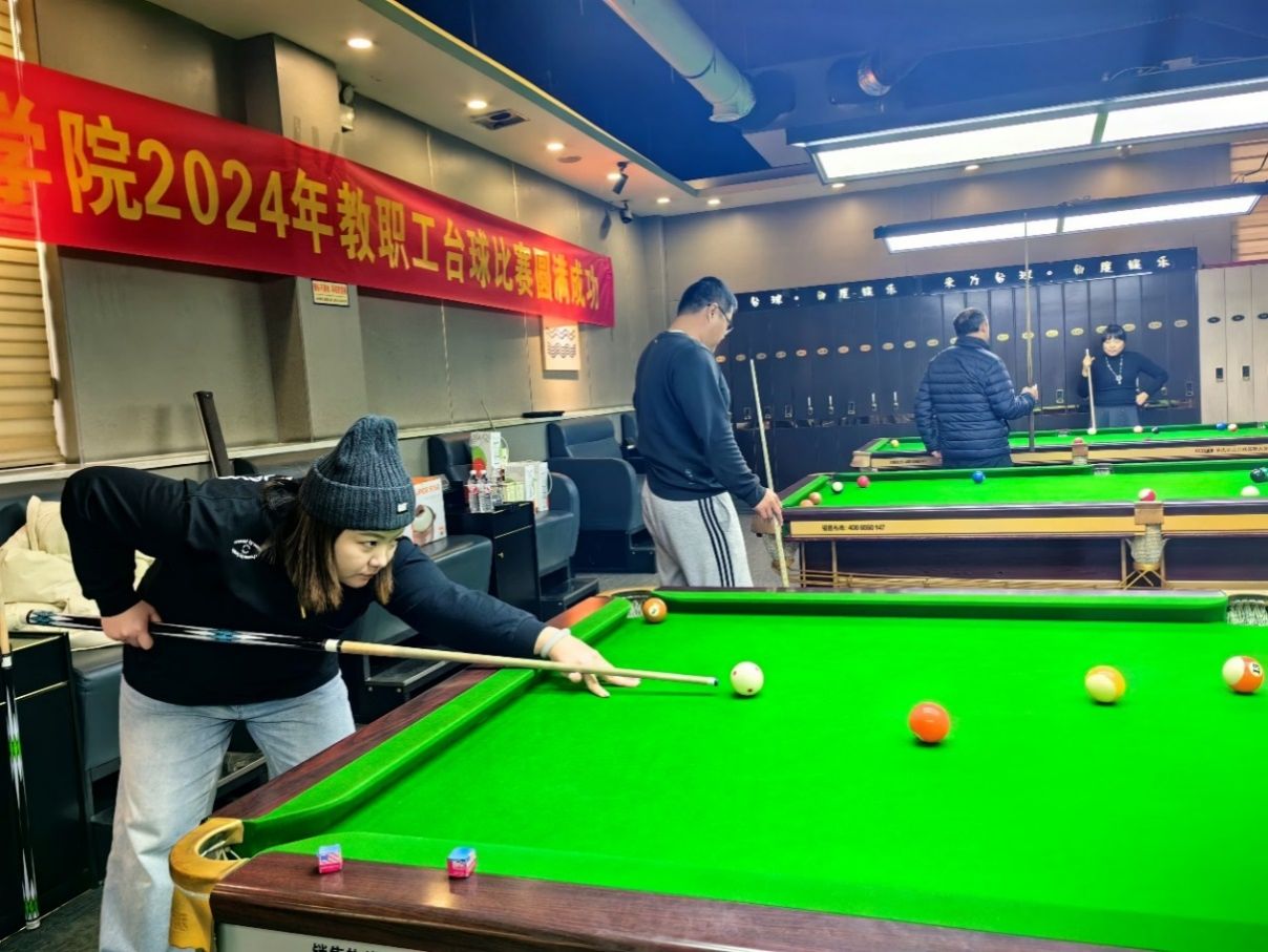 为丰富教职工业余文化生活,增进教职工之间的交流与友谊,在学院党委、行政的大力支持下,经过认真筹备,12月29日上午,今年会jinnianhui工会举办了教职工台球比赛,得到了学院广大台球爱好者的积极响应和踊跃参与。