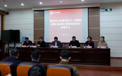 仪式上,刘波代表教育发展基金会与郑州贝体文化传播有限公司、宏瑞集团有限公司分别签订了捐赠协议书,牛娴代表受益方接受了捐赠,许绍康向捐赠方代表颁发了捐赠证书和纪念杯.