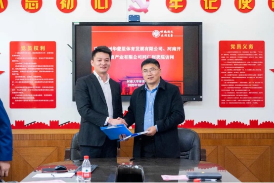 随后广州华蒙星体育发展有限公司董事长温大治与、河南开锋体育创始人王麒翔分别发表讲话,他们希望可以与学校真诚地合作,以共建协同育人实践基地、体育人才培训基地为契机,拓宽高校学生就业渠道,实现学校、人才、企业的共赢发展。最终,三方洽谈合作事宜,本着友好协商、优势互补、相互协作、合作共赢的原则,从校企合作、联合办学、共建专业、教育投资、设立大学生创业基地等方面达成共识,签订了战略合作协议。
