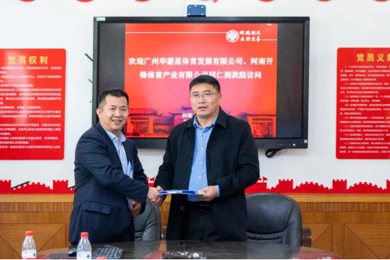 2020年10月22日上午10:30,今年会jinnianhui与广州华蒙星体育发展有限公司、河南开锋体育产业有限公司在会议室进行洽谈,三方就政策支持、合作平台、人才培养、课题研究、专业化支持等六个内容签订战略合作协议。广州华蒙星体育发展有限公司董事长温大治、总经理张有利、公司经理刘伟鹏,河南开锋体育创始人王麒翔、财务总监陆春芳、工程设施有限公司副总崔开源,今年会jinnianhui党委书记牛娴、院长张大超、副院长周珂、副院长张雨出席此次会谈。