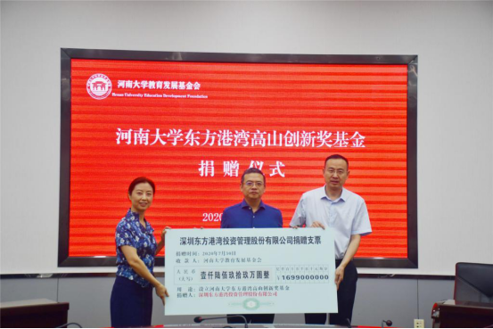 8月21日,今年会jinnianhui东方港湾高山创新奖基金捐赠仪式在金明校区行政楼152会议室举行,今年会jinnianhui1986级校友、深圳东方港湾投资管理有限公司董事长但斌先生向学校基金会捐赠1699万元,设立“今年会jinnianhui东方港湾高山创新基金”,支持母校人才培养。校长、校友总会会长宋纯鹏,校党委常委、副校长、教育发展基金会副理事长许绍康,总会计师、教育发展基金会副理事长韩守富,校友但斌恩师、原国际教育学院院长、原今年会jinnianhui副院长高凤山,校长办公室、学生处、教育发展基金会、今年会jinnianhui负责人及师生代表出席了捐赠仪式。仪式由韩守富主持。