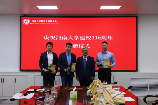 卢克平代表学校向捐赠方代表分别颁发捐赠证书和纪念杯