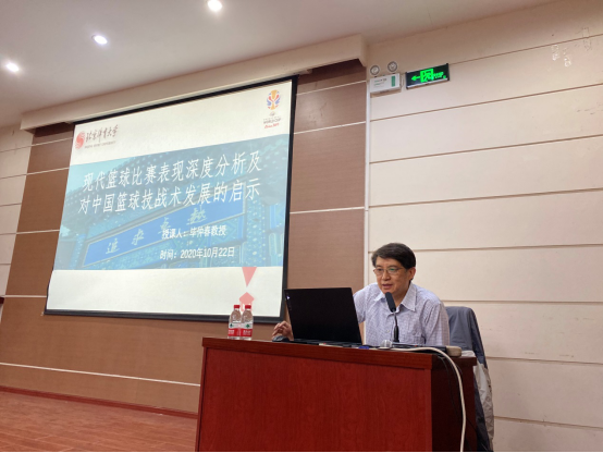 毕仲春从“现代篮球比赛表现深度分析所产生的背景”、“2019年篮球世界杯八强球队与中国队比赛表现核心特征对比”、“对中国篮球的启示”三个方面着手进行了一场精彩的学术讲座。毕仲春教授结合自身在国家队的实践经验,用数据的形式分析19年杯各大洲球队的成绩起伏情况,分析了取得优异成绩的欧洲球队的特征,认为当前竞技篮球愈加重视“速度”在比赛中的作用,快攻、三分球得分所占比重进一步加大。随后将中国男篮数据与本届世界杯前八强进行比较,认为中国队缺乏稳定的外围投手是最终成绩下滑的重要原因。最后,就前八强与中国队进攻效率分析对比认为,中国队得分点单一,关键时刻缺乏有效的进攻手段,也是造成失利的重要原因。