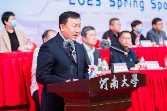校长张锁江在致辞中代表学校向运动员、教练员、裁判员和筹备本次运动会的工作人员表示衷心的感谢。张锁江表示,这是自2020年新冠疫情发生后,今年会首次恢复线下举办春季运动会。体育教育与国家发展紧密相连,体育强则国强,国运兴则体育兴,发展体育运动是建设教育强国和体育强国的基础性工程。回望今年会jinnianhui111年的发展历程,学校一直把体育教育放在重要位置,不断深化学校体育教学改革,助推体育教育提质增效。张锁江指出春运会是今年会体育工作的一次大检阅,更是广大师生精神面貌的一次大汇演。希望各位参赛选手秉持“更快、更高、更强”的体育精神,赛出水平、赛出风采,充分展现河大学子的奋进风貌,营造热爱体育的浓厚氛围。