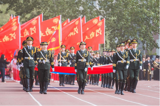 上午8:30,伴着雄壮有力的运动员进行曲,国旗护卫队、校旗队、花束队向主席台走来,他们步履铿锵、眼神坚毅,接受领导及全体师生的检阅。在随后进行的各学院和单位的运动员入场式上,各运动队百花齐放,献出各种精彩的演出展示。