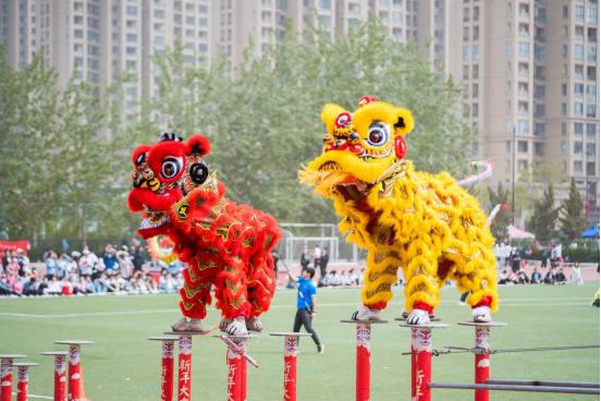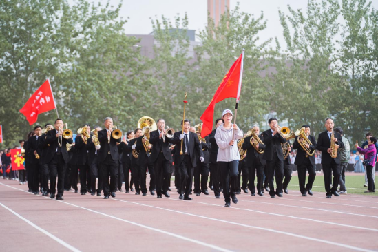 凭借一场活力四射的花样篮球表演,附属小学演出队孩子们的可爱与认真瞬间点燃了全场的气氛;学校老干部军乐队紧随其后,他们白发苍苍却激情四射,欢快昂扬的乐曲反映出他们心怀河大,退而不休的爱校情怀;点、扫、劈、撩,翻飞的双截棍,法学院师生实力展现“法天立极,会通中西”的院训;金狮跃动、白鹤亮翅,国际汉学院的表演刚柔并济,生动诠释“学中国传统文化,筑文化交流之桥”的宗旨。