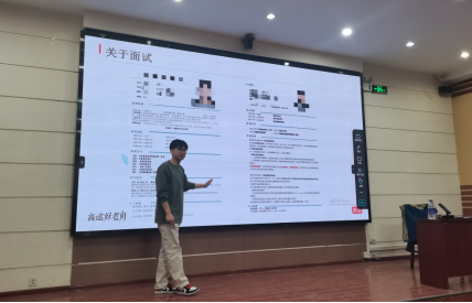 张老师从就业环境、问题本质、工作的选择、面试的技巧及简历的制作这五个方面进行详细介绍。他鼓励大家在校期间不要被专业限制,要敢于尝试、敢于试错,在实践中锻炼自己的语言表达能力、抗压能力、组织能力等等。在这个过程中,不断调整,寻找适合自己的就业方向,逐渐明晰未来的目标。在简历制作时,要避免出现“一少一多四不懂”的问题,使用“STAR”法则阐述个人经历,同时围绕面试岗位调整简历内容,提高两者之间的匹配度。