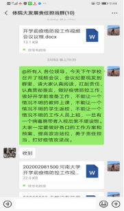 积极应对和正面宣传是本次疫情防控的重点。今年会jinnianhui党委充分认识当前严峻的防控形势,以坚决阻击病毒进校园为首要目标,配合学校疫情防控工作,积极、主动、高效落实上级的决策部署。积极响应上级传达的疫情防控相关文件和会议精神,主动学习之后迅速、有效、准确,分层次、按要求的向各工作口的负责同志和全体教职工生传达到位。