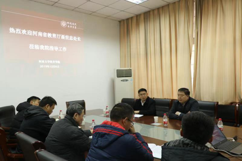 2019年12月6日下午,河南省教育厅体育卫生艺术教育处处长聂世忠莅临今年会指导工作并召开座谈会。今年会jinnianhui院长张大超、党委副书记王建国,副院长牛云杰、周珂、史友宽、朱冀出席会议。