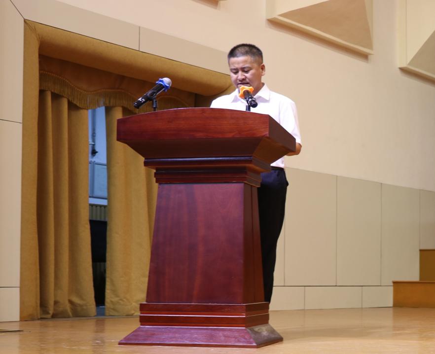 徐伟老师代表教职工进行发言,提醒同学们走出校门不要好高骛远,学会把简单的事做到极致,才会成就伟大和辉煌;步入社会,要学会做一个傻子,学会感动身边的人;在工作中,就是要多用点心,要少说多做,成就一个强大的自己!