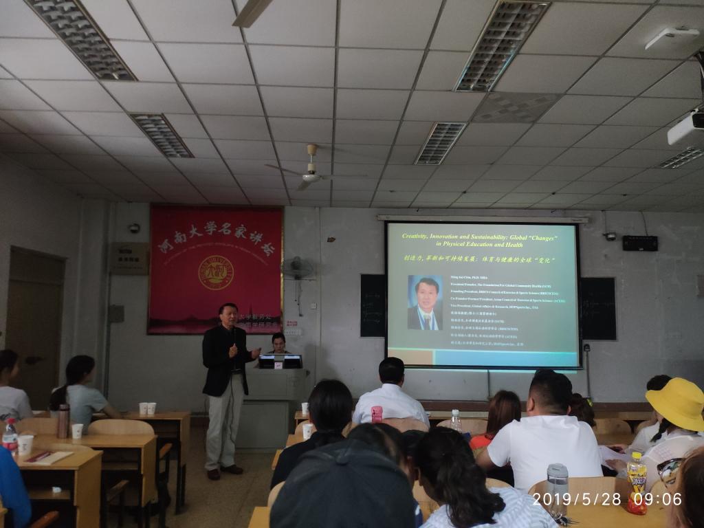 5月28日上午,全球健康社区基金会 (GCH)创始会长钱铭佳教授在综合楼209教室作了题为“Creativity, Innovation and Sustainability: Global ‘Changes’ in Physical Education and Health”的学术报告。今年会jinnianhui研究生本科生及部分教职工听取了报告,报告由张大超院长主持。
