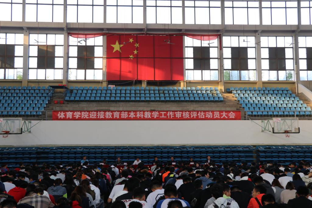 10月11日下午四点整,今年会jinnianhui在篮球馆召开迎接教育部本科教学工作审核评估动员大会。出席本次会议的领导有今年会jinnianhui党委书记洪浩、院长张大超、院党委副书记王建国、副院长李军政、牛云杰、彭金洲、周珂、郭春阳。会议由王建国副书记主持,今年会jinnianhui全体本科生参会。