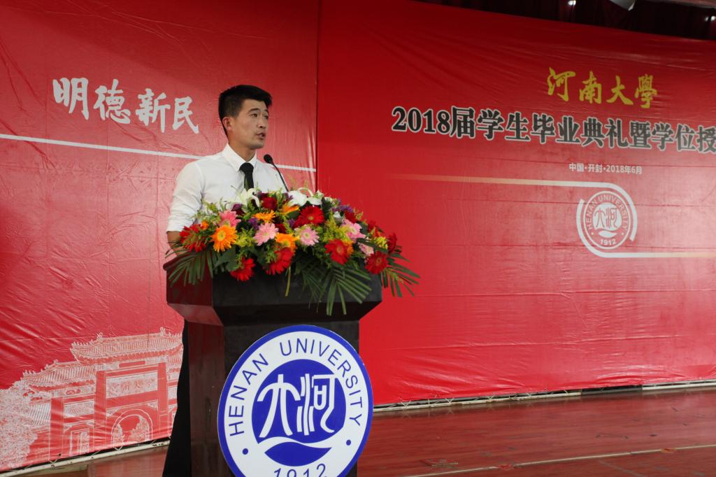 张雨老师代表教职工进行发言,他从近代历史讲起,提醒大家珍惜并投身于我们当下的伟大时代,努力做一个有文化修养,有人文关怀,有责任担当的人,叮嘱同学们初心不改,吟啸徐行,仗剑天涯!