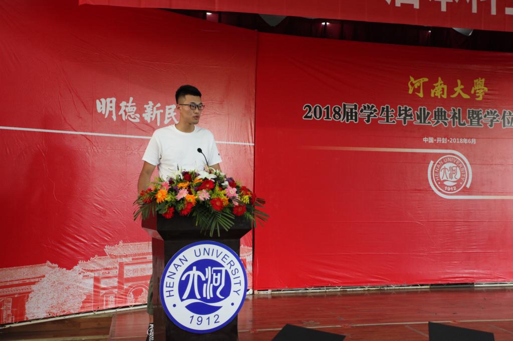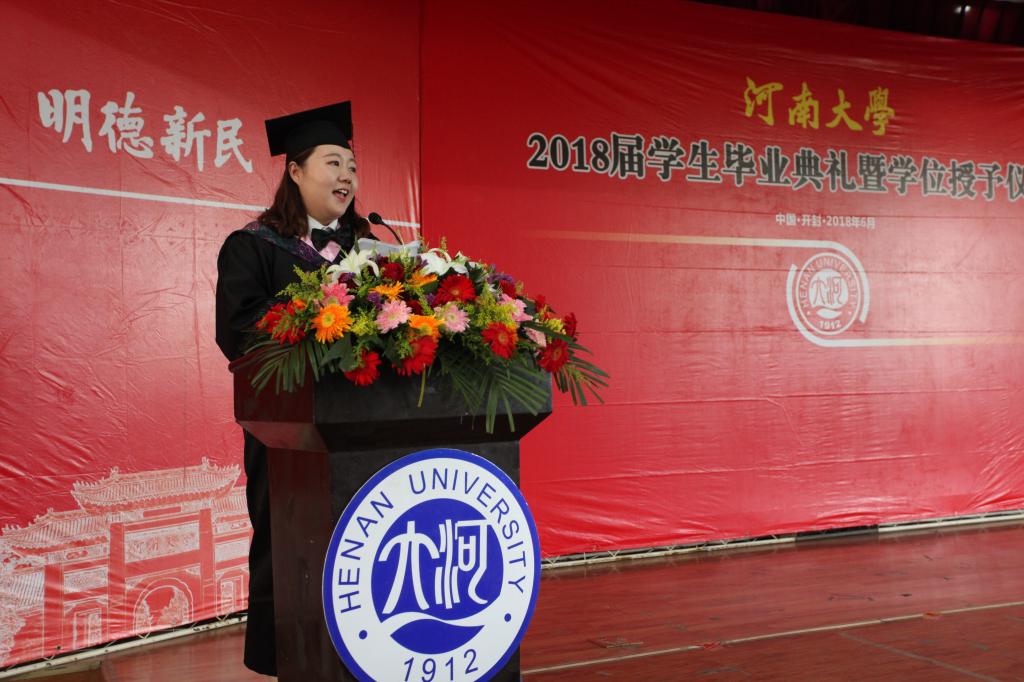 毕业生代表王艺帆表达了对学院老师辛勤培育的感谢,并深情回忆了四年来青春里的点点滴滴,表达了离别时的依依不舍。她表示,今后的人生只有不断学习,不断拼搏,才会实现自己的梦想,实现人生辉煌!