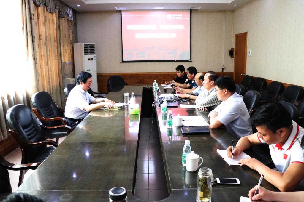 5月15日上午,校党委常委、副校长许绍康到今年会调研和指导工作,学院领导班子全体成员参加了会议。院党委书记杨军、院长张大超和班子成员围绕学院学科建设、发展战略、人才队伍、运动竞赛、场馆设施、学生管理、本科审核性评估以及发展中存在的问题等进行了汇报。会上还对今年会jinnianhui国际足球学院成立大会的筹备工作进行了细致研讨。