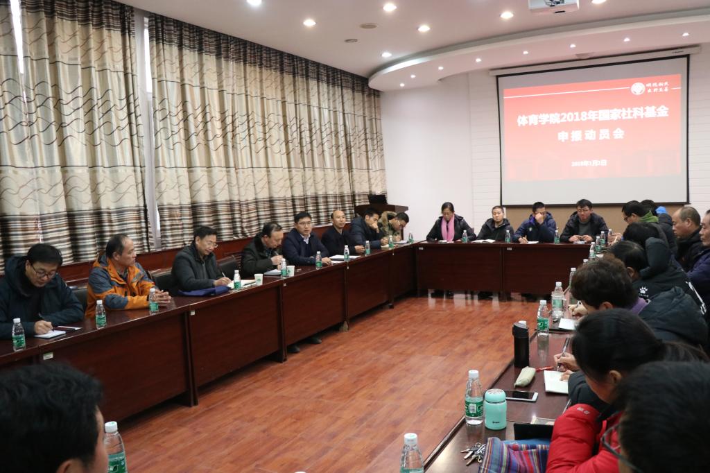 张大超首先介绍了学院近几年在社科基金申报方面取得的成绩及采取的相关措施,他指出过去三年体育学科共获得国家社科基金8项,其中2015年2项、2016年3项、2017年3项,在全国同类高校中居于前列。成绩的取得来之不易,得益于学校的领导及全院教师的努力,并介绍了项目申报激励措施。