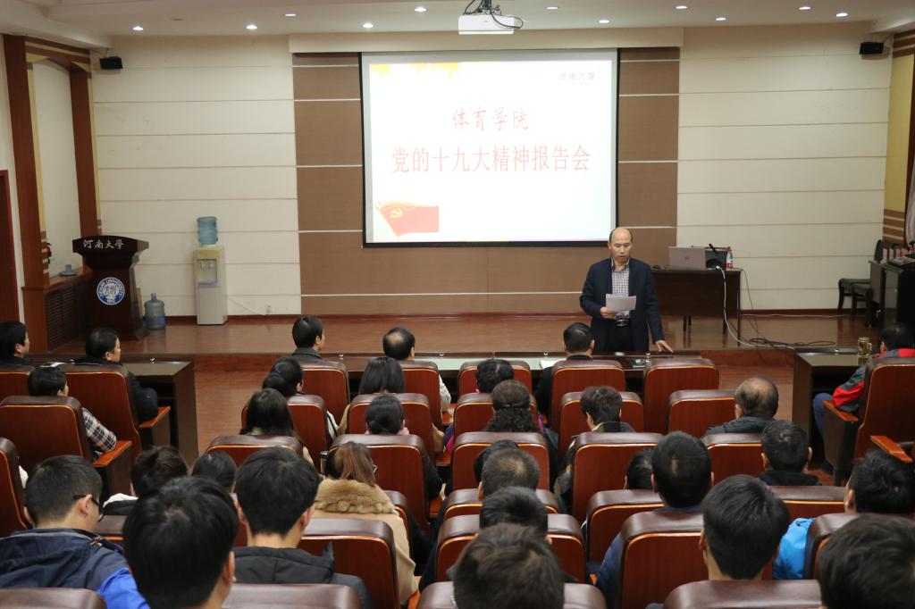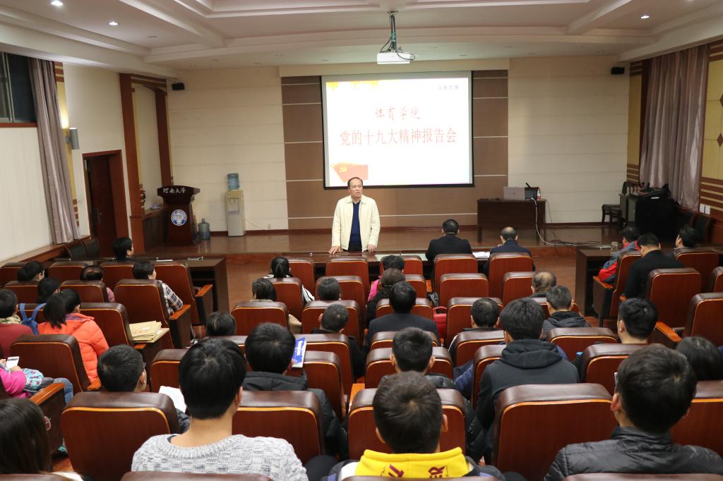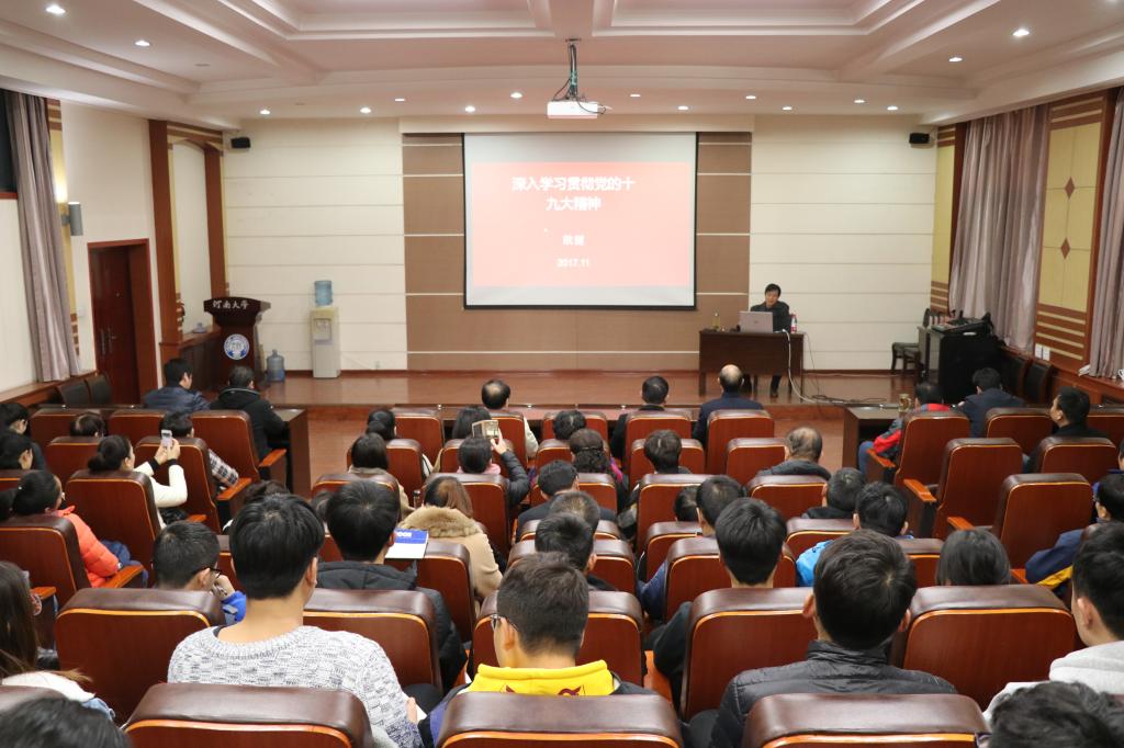 11月23日下午,今年会开展党的十九大精神学习报告会。校宣讲团成员、马克思主义学院欧健博士作宣讲报告。院党委书记杨军、院长张大超等全体领导班子成员、全体教职工、学生代表共约100余人参加。大会由院党委副书记贾天明主持。