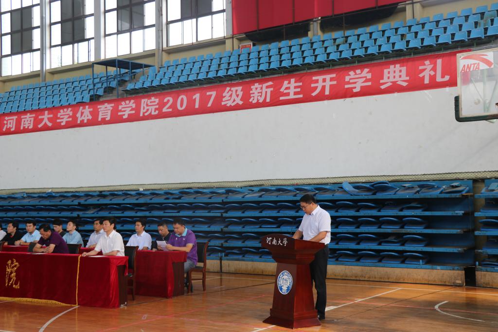 步入了新的校园,开启新的人生旅程,我想大家都是激动和兴奋的,看到大家充满朝气的面孔,作为你们的老师和院长,我感到一种“得天下英才而育之”的喜悦。期待着未来你们能够在这个新的梦想跑道上创造奇迹!如果说你是一颗宝石,那么走入梦想的大学就是你从巍巍群山中被人发掘,然而,真正能够成为庙堂重器,家国栋梁,还需要我们不断的雕琢自己,打磨自己!从品行、从学识、从意志、从视野上有所建树!正如这所厚重学府的校训“明德”、“新民”、“止于至善”!同学们,今天入校的你们十分优秀,呈现“三高”优势:一是,学业专业水平高(体育教育:100分以上,最高143分;文化课498分;运动训练与武术与民族传统的学子在考试时得到外聘专家评委的高度好评;体育舞蹈专业最高分达到177分;研究生同学最高413分);二是,生源结构层次高(本、硕、博、留学生,加拿大的PETER将攻读博士研究生,俄罗斯国立体育大学的4位优秀学子将攻读硕士研究生都将成为大家的同学);三是,身体条件水平、颜值高(各个同学都是俊男靓女,女生170以上,男生185以上比例)。所以,你们具备了良好的基础条件,祝愿你们在美丽的河大园里实现自己的人生理想。