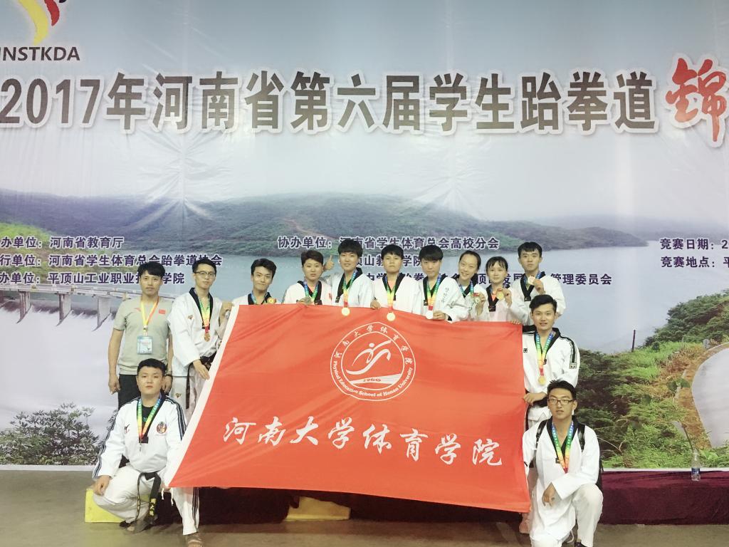2017河南省第六届学生跆拳道锦标赛于8月25日-28日在平顶山工业职业技术学院展开了激烈的竞争。今年会今年会jinnianhui体育教育专业和运动训练专业13名同学代表今年会jinnianhui组队参加本科乙组和本科丙组的比赛。