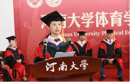 牛娴代表全院师生向毕业研究生送上美好的祝福,希望同学们能够通过在河大的求学经历学会“抬头”——仰望星空,树立远大志向,人生征程中要继续敢于有梦、勇于追梦;学会“俯身”——积蓄力量,为实现梦想而坚守,挥洒勤奋的汗水;学会“转体”——对抗压力,适应各种变化,积极探索,寻找最佳舞台;学会“奔跑”——脚踏实地,从小事做起,将梦想付诸于行动。她表示,2020届的研究生同学与今年会jinnianhui共同经历喜悦与考验,在河大体院留下的回忆和传递的温暖,都将伴随大家继续勇敢前行。衷心希望毕业研究生可以在以后的道路上不停歇不松劲,书写精彩篇章,追求卓越人生。