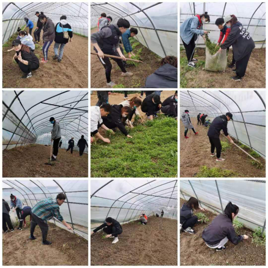 在大棚里,同学们不怕脏、不怕累,分工明确,团结协作,经过一上午的劳作,高效高质量的完成4座大棚的耙地、拔草、清理田地等农活,大家的吃苦耐劳、无私奉献精神,让在场干活的脱贫户感动万分并连连赞许。