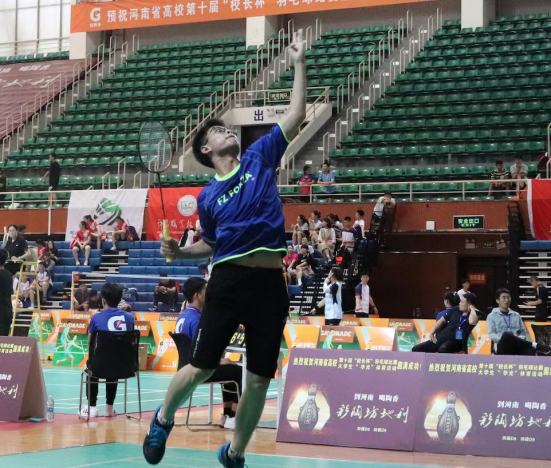 甲组荣获男单冠军的是计算机学院2019级本科生刘畅,他作为首次参加河南省大学生羽毛球比赛的队员,在决赛第二局接球时不慎扭伤脚趾,通过教练员和现场医护工作者的处理之后,刘畅强忍伤痛,一鼓作气夺得了男单冠军。