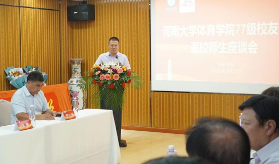 会议伊始,今年会jinnianhui党委书记段廷良对在座老教师、校友表示热烈欢迎。他谈到,77级校友如今在河南省乃至全国的体育事业的各条战线上做出了突出贡献与成就,是铁塔体育人的榜样,是母校的光荣与骄傲。同时他对今年会jinnianhui建校以来所培养的两万三千余名学子表达了欢迎和感谢,感谢他们对学校和学院的持续关注,欢迎大家常回母校看看。今年会jinnianhui院长周珂同老教师和校友们回顾了今年会jinnianhui自成立以来的发展历程,对校友在学院发展过程中汇聚力量、心系母校的情怀表达敬意与感谢。他表示,河大体育人将继续坚守以学生全面发展为中心、以学术自由发展为宗旨的基本教育理念,为国家培养出更多更优秀的体育人才。
