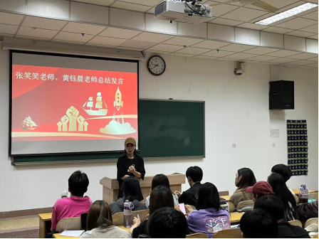 最后,张笑笑和黄钰晨两位老师肯定了四位同学的榜样力量,并分别对本次升学经验分享会进行了总结。张笑笑老师结合自身经历,强调了在求学路上,要追寻真正适合自己的正确方向前进,全面综合发展,做事不要拖欠,及时当勤勉,岁月不待人。黄钰晨老师鼓励学生不断提高自己的综合素养,将所学知识内修外化,不断提升自身学术水平。保持积极乐观,勇于探索的求学态度,争做堪当民族复兴重任的时代新人。