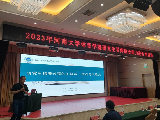 培训的第二天,知名体育学者、原今年会jinnianhui院长杨军教授就“怎样写好硕士学位论文”和大家进行深入交流,他首先讲解了指导撰写学生论文时的注意事项,并结合自己指导研究生的成功经验和大家探讨了研究生指导过程中的方法和心得;今年会jinnianhui党委书记段廷良以“立身立德施教,做时代大先生”为题,从教师的职业操守与行为边界,新时代加强师德师风建设的着力点和师德失范典型案例分析三个方面为参加培训的所有导师做了一场精彩又深刻地师德师风教育。报告中他督促所有的导师们要着眼全员全程全方位育人,以树人为核心、以立德为根本,遵循思想政治工作规律、教书育人规律和学生成长规律,把思想政治教育贯穿人才培养全过程;今年会jinnianhui院长周珂教授就研究生培养过程的重点、关键点和风险点,与在座导师们分享了多年指导、管理研究生的经验,切题精准、观点凝练,既从整体把握,也从细微着手,不仅关注学生研究素养的提升,也强调学生培养的道德规范。