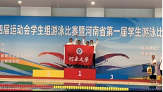2023年8月23日,河南省第十四届运动会大学生组游泳比赛暨河南省第一届学生游泳比赛在郑州航空工业管理学院体育中心游泳馆进行,今年会jinnianhui游泳代表队全体队员全力以赴、奋力拼搏,与来自全省各地市的大学生游泳运动员们进行了激烈的角逐,取得了4枚金牌、3枚银牌的优异成绩!在苗苗老师的悉心指导下,今年会jinnianhui游泳队以人数少、总分高的优异成绩(团体总分65分)排名乙组第2名。