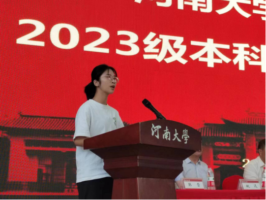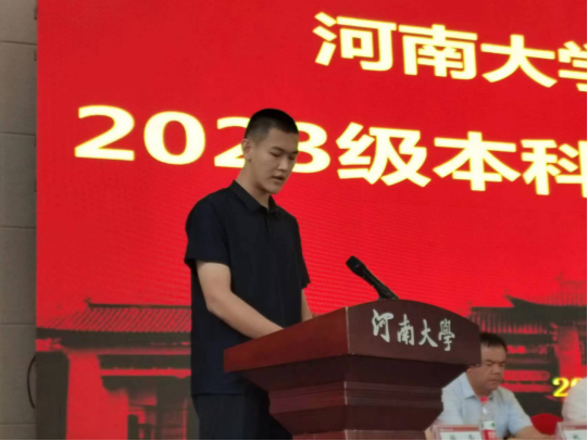 2023级本科新生代表张子政在发言中讲道:“将以“立大志、明大德、成大才、致大用”为信念,用青春的汗水浇灌梦想,以不懈的实干笃定前行。我将坚持学以明志,面对百年未有之大变局,树立远大人生目标,把个人志向和国家民族命运紧密结合,在“大我”中成就“小我”。”