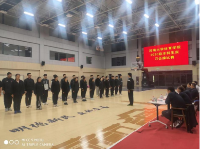 赛前,段廷良给同学们进行了实习动员和寄语。比赛过程中,21个参赛的实习小组步伐整齐、口号洪亮、动作有力、精神抖擞。比赛结束,裁判长田凌老师宣布了本次比赛名次,院领导和评委组老师为前六名实习代表队及带队老师依次颁奖。最后,周珂进行现场总结点评,并对全体同学提出了殷切希望,希望大家以顽强拼搏的意志、富有朝气的青春姿态传承好河大体院精神。