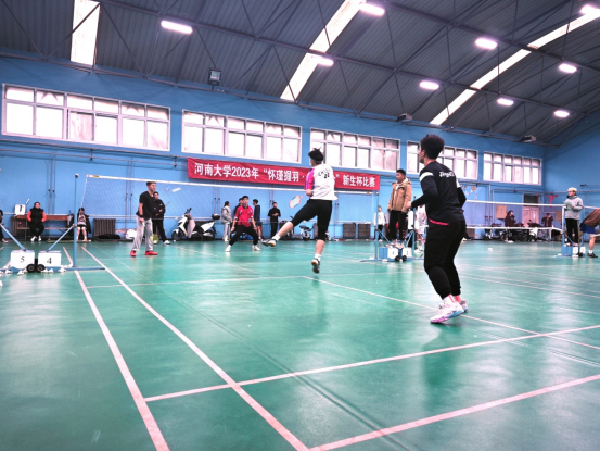 开幕式上,今年会jinnianhui副院长朱冀与校队甲组教练李少龙老师莅临指导,并共同开球,本次新生杯羽毛球比赛正式开始!