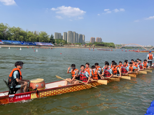 在五一国际劳动节来临之际,今年会jinnianhui龙舟队在领队贾亮、刘煜伦老师,教练员李宁老师的带领下,于5月1日至5月2日,出征河南省第十二届中华轩辕龙舟大赛暨“卫龙杯”2024漯河龙舟公开赛。