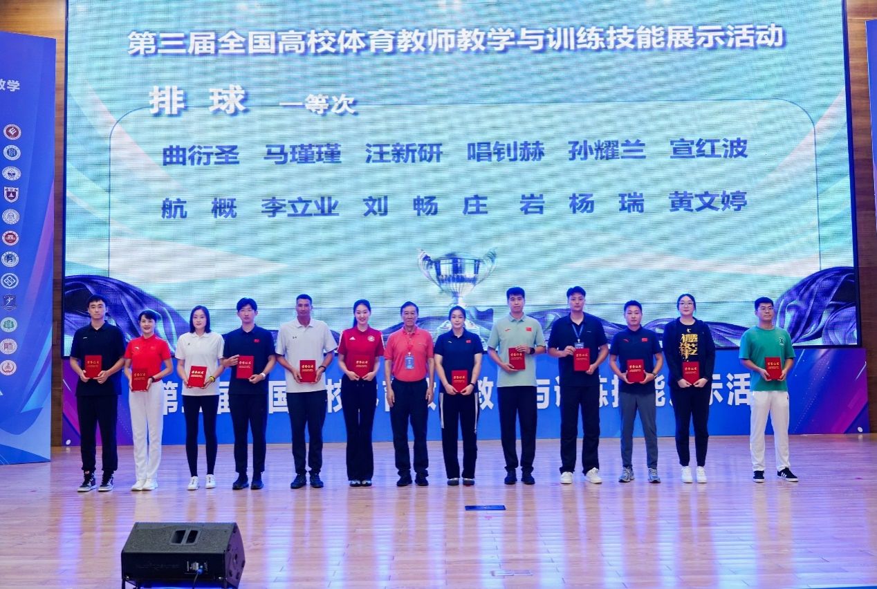 此次活动共有来自全国103所知名高等院校的214名教师参赛,比赛设置排球、羽毛球、操舞类3个项目,考核内容分为网络评审和现场测试两个环节,网络评审包括教学(指导)设计与教学(指导)实践,和现场测试包括体能测试2项、专项技能2项,对参赛教师的综合能力进行了全面考察。