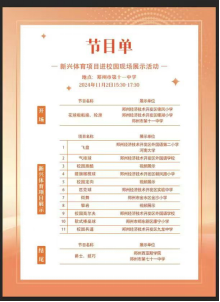 11月1日—4日,由中国教育学会体育与卫生分会、河南省教育厅联合主办的全国中小学落实“每天两个大课间”体育活动暨“新兴体育项目进校园”现场观摩交流会在郑州召开。