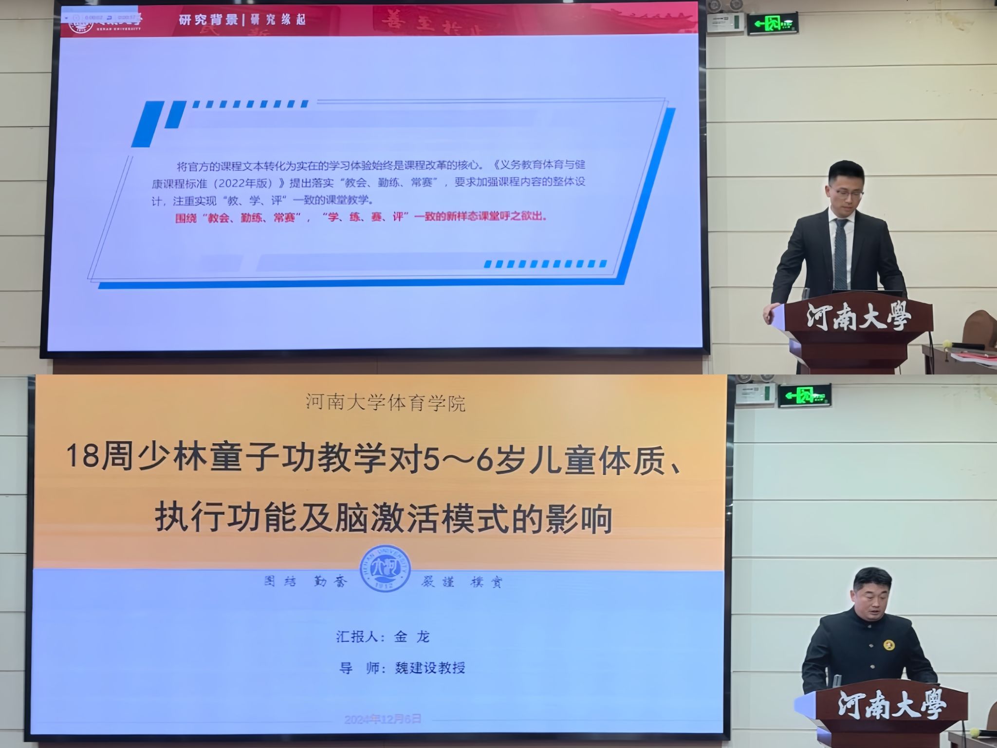 乔石磊、金龙依次从自己文章的研究背景及意义、理论基础、研究框架、研究方法、创新点等内容进行汇报,以严谨的研究态度、扎实的学术功底展示自己的研究成果。答辩委员会专家在认真倾听答辩学生的阐述后,针对论文提出相应的问题与建议。答辩学生就老师们提出的问题进行深入解答,对研究课题的不足之处有了深刻认识。经表决、合议,答辩委员会一致同意两位博士生顺利通过论文答辩,并建议授予体育学博士学位。
