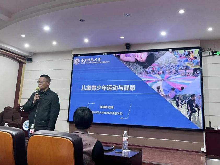 汪晓赞教授以“儿童青少年运动与健康”为题,从“我们的孩子健康吗?运动与健康的那些事;健康促进,行动起来”三个方面进行讲解,表示体育兴则国运兴,少年强则中国强,呼吁青少年应每天锻炼两小时,积极落实校内一小时校外一小时。从多个角度指出科学的体育锻炼对学生青少年身心健康的重要影响,同时突出强调了运动能力与身体活动的重要性,运用独特的视角分析了运动能力与健康、肥胖等之间的相互关系。动作发展作为第一智力语言,以“保障生存与促进成长”的双重价值成为了人类由儿童向成人过渡道路上的首项任务,以及中高强度的体育运动可以帮助改善情绪和心理状态等观点,指出幼儿时期是儿童基本动作技能发展的重要时期,在青少年阶段,儿童的基本运动技能发展逐渐放缓,体能发展逐渐提升。