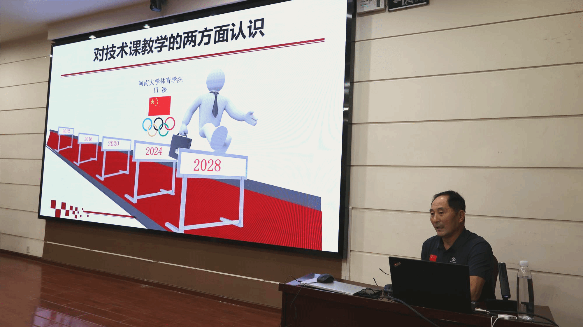 随后,两位资深教师分享体育教学与育人的实践经验。田凌教授结合多年教学经历,从课程设计的针对性、课堂管理的有效性、师生互动的趣味性等方面展开,强调要立足学生特点因材施教,善用多元教学方法提升课堂质量。易春燕教授则聚焦“育人初心”,提出教师不仅要传授专业知识,更要关注学生心理健康,在教学中融入品德教育与价值观引导,为新教师提供了可落地的实践参考。