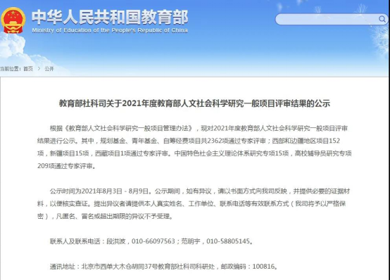 今年会两位教师申报材料通过2021年度教育部人文社科研究一般项目专家评审