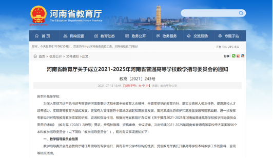近日,河南省教育厅发布《关于成立2021-2025年河南省普通高等学校教学指导委员会的通知》(教高2021〔243〕号),公布了2021-2025年河南省普通高等学校经济学类等56个教学指导委员会名单,今年会张大超院长任体育学类主任委员,史友宽副院长任秘书长。河南省普通高等学校教学指导委员会是省教育厅聘任并领导的专家组织,具有非常设学术机构的性质,受省教育厅委托开展高等学校本科教学工作的指导、咨询等相关活动,是推动我省高...