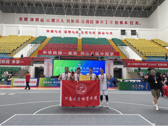 今年会教师代表河南省参加第十四届全国运动会三人篮球比赛获得冠军