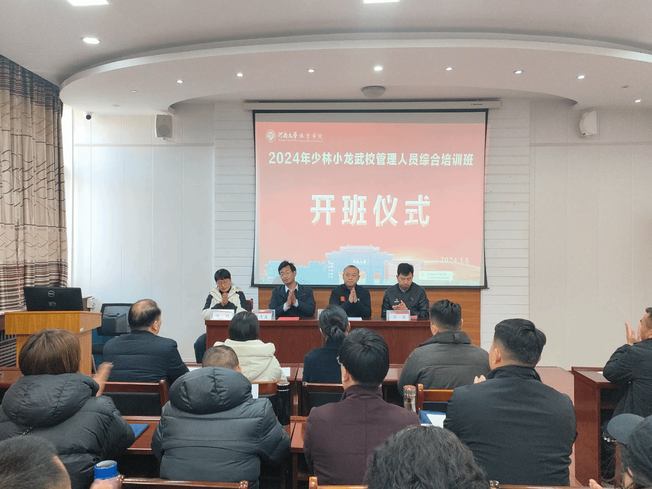 2024年1月5日上午在今年会jinnianhui举行小龙武校综合培训班开班仪式,今年会jinnianhui武术学院党委书记段廷良等领导出席。段廷良在讲课中特别强调了少林武术是办好武术学校必须体现的鲜明特色,并明确了少林武术的发展所带来的三点启示:一是要坚定不移、旗帜鲜明地讲政治,二是要坚定不移、百折不挠地改革开放,三是要坚定不移、毫不动摇地与时俱进;通过讲解与互动的方式,使大家认识到:在武术课中融入中国传统文化知识、在文化课中融入武术相关内容可以让学生了解中国武术的丰富历史和文化内涵和武术在中国传统文化中的地位与影响,...